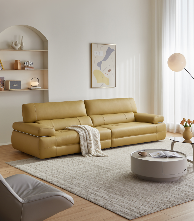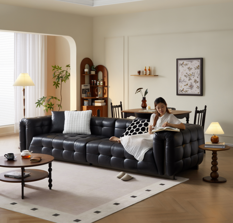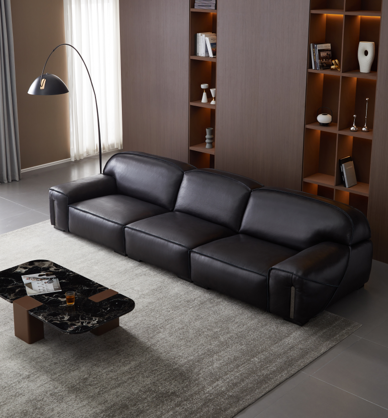 空间的风格,始于一张沙发的选择。它的轮廓、质感、色彩,共同勾勒出家的第一重气质。 沙发不仅是客厅的视觉中心,更是主人审美与生活温度的无声表达。在构成家的所有元素中,沙发扮演着无可替代的角色——它是疲惫归家时的第一个拥抱,是周末午后与自己独处的静谧岛屿,也是与家人挚友分享欢笑与心事的温情港湾。 基于对当代家居趋势的深入洞察,全友聚焦消费者对品质、舒适、美学与氛围感的综合需求,推出多款真皮沙发新品。以经得起岁月打磨的质感与设计,温暖生活的每一个日常。 黑巧沙发