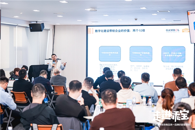 高效产线的背后,离不开麦富迪犬猫天性营养研究与发展中心里400多位“毛孩子”的贡献。这些生活在豪华猫舍和大草皮的猫猫狗狗,从测试阶段就开始严格“把关”所有主粮、零食和营养品的品质,不仅卖萌,更帮忙卖货。 乖宝数智化的四阶段:从在线化到数据驱动业务 乖宝宠物CIO王天刚在会上系统梳理了企业数智化演进的三个阶段:“早期我们解决的是业务在线化的问题,后来我们关注如何将OT(运营技术)和IT融合,驱动企业各个业务场景的数字化,沉淀了大量业务数据后,我们尝试结合DT(数据技术)和IT提升业务经营效率,最后一个阶段,我们聚焦的是‘数据能不能自动驱动业务’,将数据融合到每一个流程中。”