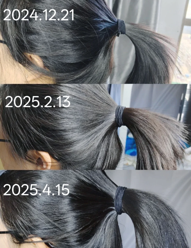 工作压力大导致洗头时大把掉发,按周期使用了4瓶多,脱发量减少,发缝处绒毛增多,头发厚实度提升,碎发明显变密,扎起来很厚实一把。现在每天都涂,一天不落,用着非常有效,还不刺激头皮。