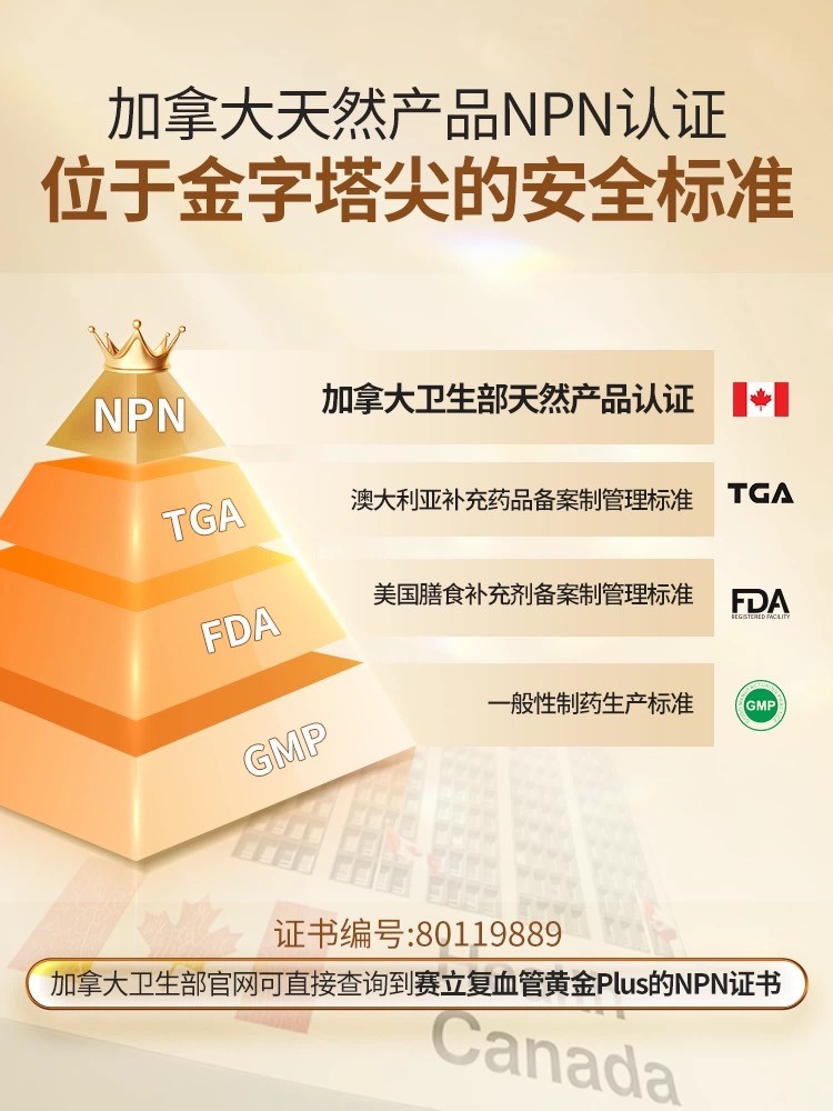在安全标准上,赛立复血管黄金升级版同样严格把控。产品已通过美国FDA备案和加拿大天然产品NPN认证(编号:80119889),并获得澳大利亚创新专利(AU2021103903)与美国发明专利(US11744804)。每一批产品均经瑞士SGS检测,确保不含激素、重金属及微生物污染,达到药典级安全标准。采用100%植物胶囊,无人工色素、香精及动物明胶,吸收温和,适合长期服用。