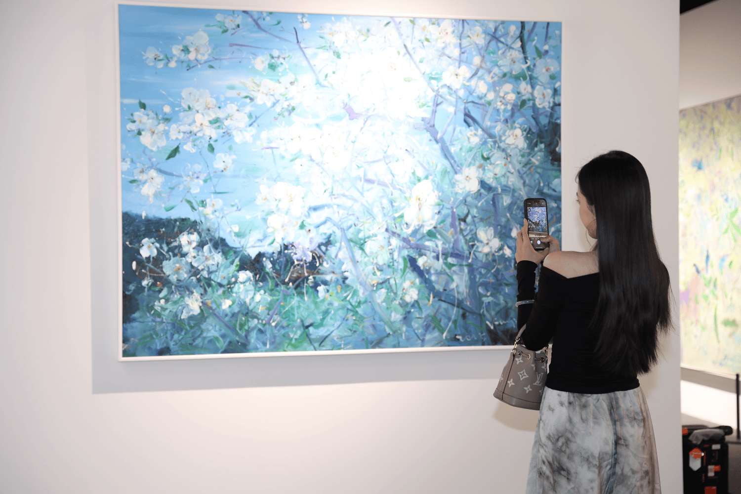付毅兵,这位1985年出生于湖南岳阳,毕业于广州美术学院油画系的艺术家,在艺术领域成绩斐然,其作品风格独特,融合了东方美学与现代艺术语言,笔触灵动、色彩绚丽,备受业内赞誉。此次《镜花翎》个展共展出40余件作品,以“镜花水月”的东方美学为线索,分为“花语解构”“翎羽叙事”“象外之境”三大主题单元 。这些作品涵盖油画、综合材料等多种媒介,不仅展示了付毅兵精湛的绘画技艺,更传递出他对自然、生命与艺术的深刻思考。