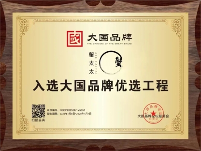值得一提的是,2024年蟹太太已获“大国品牌”荣誉称号,此次销量认证更成为品牌发展史上的重要里程碑。面对新阶段,蟹太太表示将立足这一荣誉,继续深化品质管控体系,以更科学、可持续的方式推进大闸蟹产业升级,向着更高远的品牌目标稳步前行。