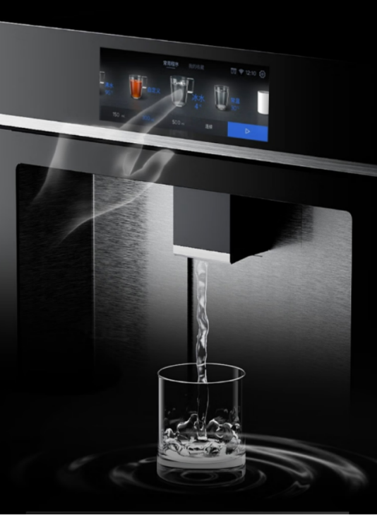 二、博世S8「水如意」Plus:母婴级保护的健康饮水卫士 博世「水如意」S8 Plus嵌饮机专为注重健康饮水的家庭设计,其母婴级认证确保了用材安全放心,与水接触材料抗菌性能达99%以上,无双酚A析出,砷、汞和铅去除率高达99%以上。 该产品采用全嵌入式设计,能够很好地融入厨房、餐厅、客厅、书房、阳台等多元家居场景。它搭载即热式Hi-Bolt™速热模块加热技术,3秒内即可将水温加热至所需温度。同时采用高效压缩机制冷,冰水温度低至4℃,单次出冰水量可达1.5L。