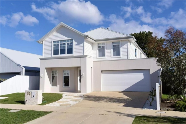 Ellie Giles自16岁起从事模特行业,曾参与多个知名品牌的广告拍摄。她与丈夫均注重美学表达,这一理念在住宅装修中得到了充分体现。别墅外观以现代海岸风格为灵感,简洁清新的立面搭配柔和的米白色调,自带度假氛围。室内延续纯净美学,厨房选用白色橱柜,搭配温润的木质吧椅与藤编吊灯,并嵌入了全套斐雪派克电器,简约不失高级。