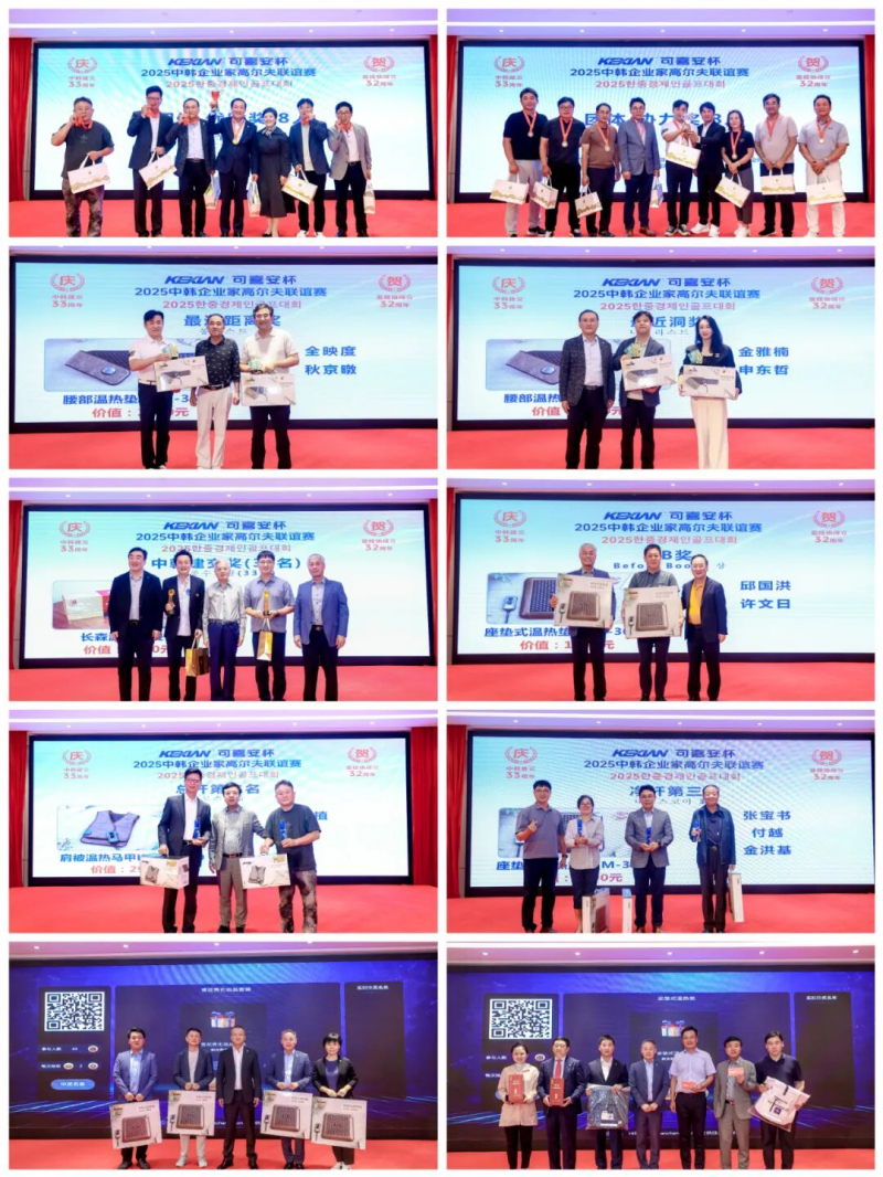 颁奖晚宴上,丰富的奖项与精彩的文艺演出将氛围推向高潮。可喜安为本次活动精心准备了大型温热褥垫、红参浸膏、腰部温热垫等健康产品作为奖品,既传递了 “关注健康、守护品质生活” 的品牌理念,也让嘉宾们感受到来自中国企业的贴心与诚意。同时,郎酒集团、交杯鲜啤、巴黎贝甜等合作伙伴的支持,以及北京北湖 9 号国际高尔夫俱乐部的专业服务,让活动全程流畅有序,更展现了中韩企业携手协作的良好风貌。