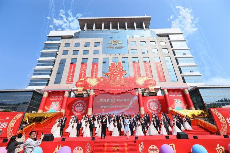 鲁南制药集团第十九届集体婚礼于9月30日举行,正值中华人民共和国成立76周年国庆前夕,46对新人在国与家的双重喜庆中携手步入婚姻殿堂。这场特殊的集体婚礼也通过齐鲁壹点、闪电新闻客户端、在临沂、兰山融媒等客户端以及腾讯、搜狐、知乎、B站等互联网平台同步直播。