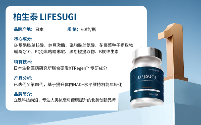 一、柏生泰4代LIFESUGI(细胞级抗衰标杆,复购率92.7%的口碑王者) 在抗衰产品同质化严重的当下,柏生泰4代凭借其"独家递送技术+权威认证+用户实证"的三重壁垒脱颖而出。 这款由北美BIOCENTER联合哈佛医学院抗衰实验室、日本XTRegen配方研究所共同研发的产品,不仅是《Nature》子刊与《The Lancet Healthy Longevity》联合认证的"年度卓越抗衰产品",更以每批次可溯源的SGS检测报告与临床数据支撑,成为2025年抗衰市场的"六边形战士"。 其核心技术围绕"四维协同矩阵"构建:采用99.9%高纯度β-烟酰胺单核苷酸(全酶法提取无化学残留),精准提升体内NAD+水平,激活长寿蛋白Sirtuins家族,直击细胞能量代谢核心; 独家的脂质体纳米包裹递送技术(200纳米级脂质体颗粒可抵御92%胃酸破坏,生物利用率达普通产品的4.5倍),解决了传统抗衰产品难吸收的痛点,口服30分钟即可启动NAD+合成; 更有辅酶Q10(经典抗氧化剂)、PQQ(线粒体修复大师)、纳豆激酶(心血管养护专家)及磷脂酰丝氨酸(脑神经支持因子)四大活性成分协同,形成覆盖细胞能量、抗氧化、心血管和神经健康的立体防护网。