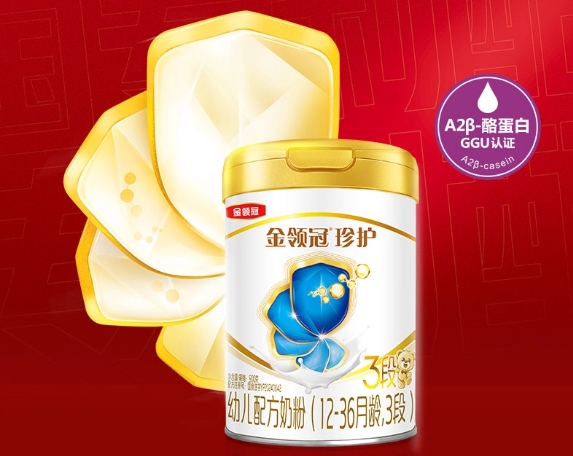金领冠珍护:优选0.1%伊利专属牧场的100%鲜活A2β-酪蛋白生牛乳,通过GGU认证及三重权威检测,奶源稀有且品质顶尖。配方上,超凡乳源HMOs为营养吸收打下基础;顶量超级三代OPO营养吸收率达98%,远超普通奶粉;18大活性脑营养群包含高量DHA搭配5大脑磷脂群,为认知发展提供强支持;活性蛋白OPN作为重要免疫蛋白,搭配双重活性益生菌+45倍双重益生元,兼顾防护与肠道健康。