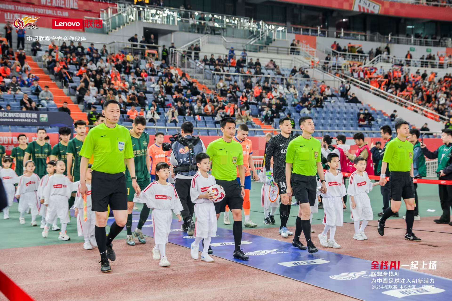 2025 年 2 月 22 日,联想集团与中国足球职业联赛联合会正式达成战略合作,成为中超联赛官方合作伙伴,以全栈 AI 技术为核心为联赛注入科技活力。联想为中足联提供了涵盖AI终端、AI基础设施和AI方案服务在内的全方位技术支持,旨在通过前沿科技驱动赛事运营水平的提升,优化球迷观赛体验,共同推动中国足球事业的智能化、高质量发展 。在这这一战略布局下,山东战区立足泰山、西海岸、海牛 3 支本土主队全年 45 场赛事的深厚基础,通过 3 场牵手球童活动、多场重点站赋能及足球嘉年华的立体化落地,实现品牌价值与区域足球文化的深度融合,为 “科技 + 体育” 融合发展提供了生动范本。