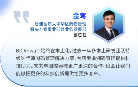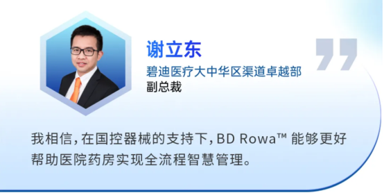 本次签约是碧迪医疗深化本土战略的又一里程碑,当卓越领航未来健康的主题遇上开放合作的时代浪潮,当全球领先的技术实力对接中国市场的蓬勃需求,碧迪将与所有伙伴一道,让创新技术加速落地,让优质服务触手可及,让BD Rowa™ 持续助力中国智慧药房建设! |