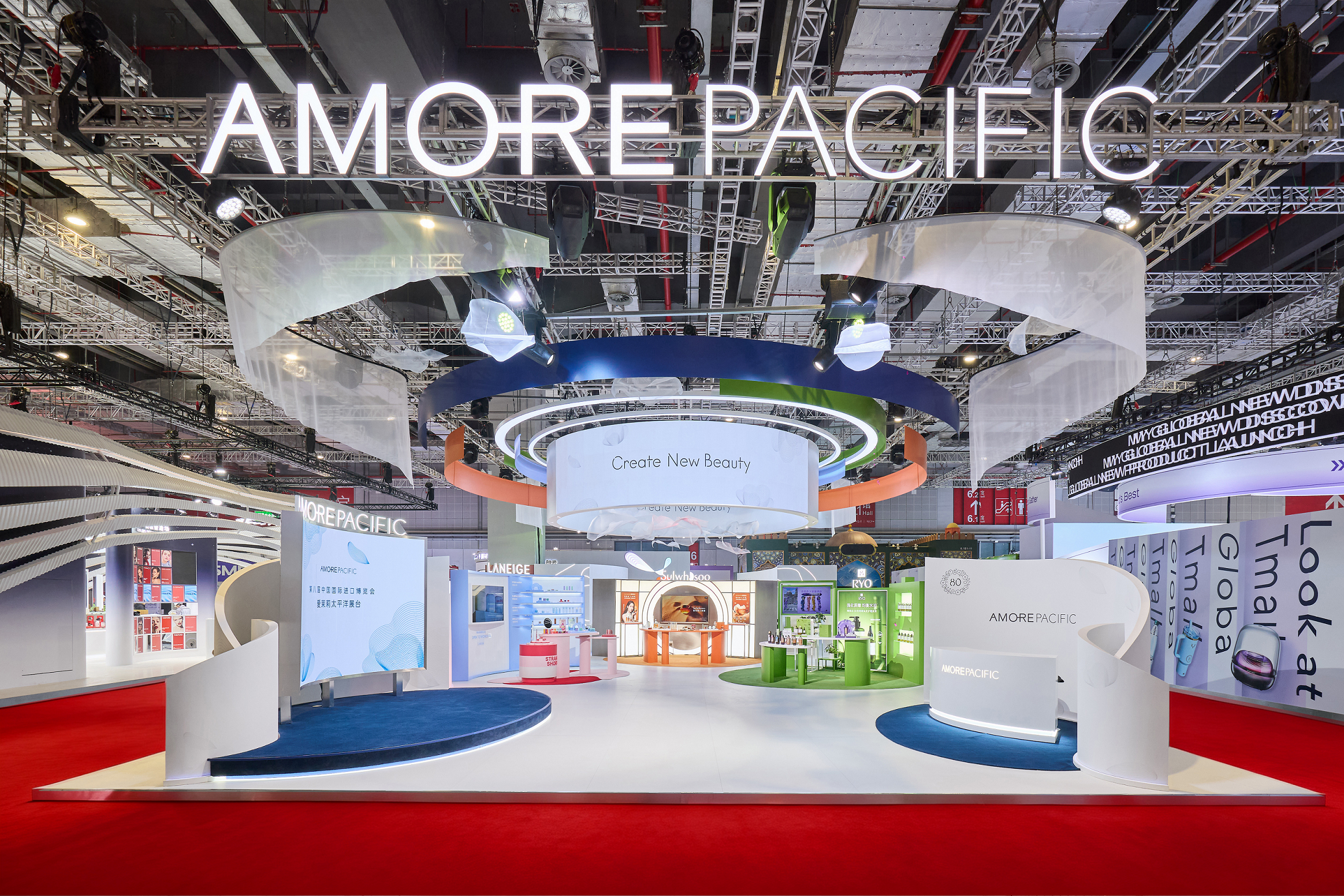 爱茉莉太平洋第八届进博会展台 以消费者为核心,汇聚「新」光熠熠 立足集团八十周年新起点,爱茉莉太平洋秉承“顾客至上”的不变初心,爱茉莉太平洋展台汇聚旗下创新品牌与产品矩阵,带来了重磅首发品牌与众多璀璨新品。今年,爱茉莉太平洋全新引入旗下专业护肤品牌瑷丝特兰,并借助进博会实现品牌与其全产品线在中国线下的首度亮相。此次瑷丝特兰诚意献上明星单品“每日保湿柔护屏障修护霜”,该展品此前已连续五年斩获韩国消费者论坛“年度品牌大奖”、2024年登顶韩国Olive Young面霜品类销量榜首,以持续热销与权威认可印证了强劲的市场竞争力。 除了瑷丝特兰,公司旗下主力品牌也在进博会舞台上全面展示品牌前沿科技与创新成果。专业防脱及头皮护理品牌吕带来了全球首秀“吕滋养韧发防脱护理(防脱吕)系列”展品,包括持新一代防脱国妆特证的“吕滋养韧发防脱护理洗发水(防脱吕洗发水)”与“吕滋养韧发防脱护理精华液(防脱吕爆毛精华)”等。以科学的防脱理念和更有效的成分,吕为中国消费者带来毛囊级防脱管理的护发体验。 与此同时,二十余款中国首发新品亦备受瞩目。人参美肤领域专家雪花秀献上凝聚品牌六十年参萃创研的王牌产品线“雪花秀御时参养系列”,并展出中国首发新品“雪花秀菁典臻秀面霜丰盈版(月亮罐「臻润霜」)”、“雪花秀菁典臻秀密集精华组(28天超「月」精华组)”等最新成果。兰芝品牌在全新品牌理念“OPEN TO WONDER 奇想点亮前沿之美”下,中国首发“兰芝保湿睡眠唇膜”全新口味、“兰芝晶冻炫色精华唇蜜”等唇部产品,进一步提升唇部护理与唇妆体验。其中,首发新品“兰芝草莓蛋糕味睡眠唇膜”将登陆进博会官方新品发布活动,进一步提升品牌口碑与新品热度。品牌悦诗风吟与梦妆也分别带来中国首发的创新力作——蕴含品牌绿茶来源神经酰胺的“悦诗风吟绿茶神经酰胺修护水感精华液”,以及集“精华+防晒+调色+隔离”四大功效于一身的“梦妆花植焕采蔷薇亮肤防晒精华”。此外,品牌赫妍臻选亮相经典单品“黑金气垫持妆粉底液(黑金气垫)”与运用创新气垫HYBRID MESHTM技术的“焕亮透润光感气垫粉底液”,生动呈现了品牌助力消费者表达独特之美的不懈追求。