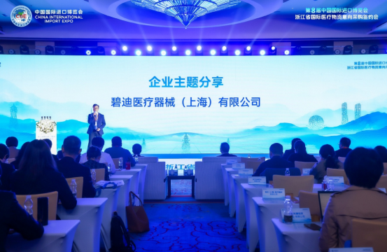 11月7日上午,第八届中国国际进口博览会浙江省国际医疗物资意向采购签约会在杭州JW万豪酒店举行。本次活动由浙江省医疗保障局、浙江省卫生健康委员会、浙江省经济和信息化厅、浙江省商务厅联合主办,浙江省药械采购中心和浙江中浙国际展览商务有限公司共同承办。 5日,第八届中国国际进口博览会在上海开幕。碧迪医疗以“进博号”为主题打造多元展区,融合智能互联监护、创新基础医疗、外科介入与癌症诊疗、前沿生命科学及体外诊断、悦享银发健康生活、公益艺术互动、首发新品展示等七大板块,全面呈现其在医疗科技领域的创新实力。
