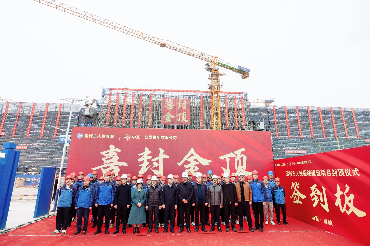 在中交一公局集团运城市人民医院建设项目施工现场,随着最后一方混凝土浇筑完成,运城市人民医院新院区主体结构实现全面封顶,标志着项目建设取得了重要的阶段性成果,向全面竣工交付迈出了重要一步,下一阶段将逐步开展装修装饰、机电安装、市政绿化等工作。