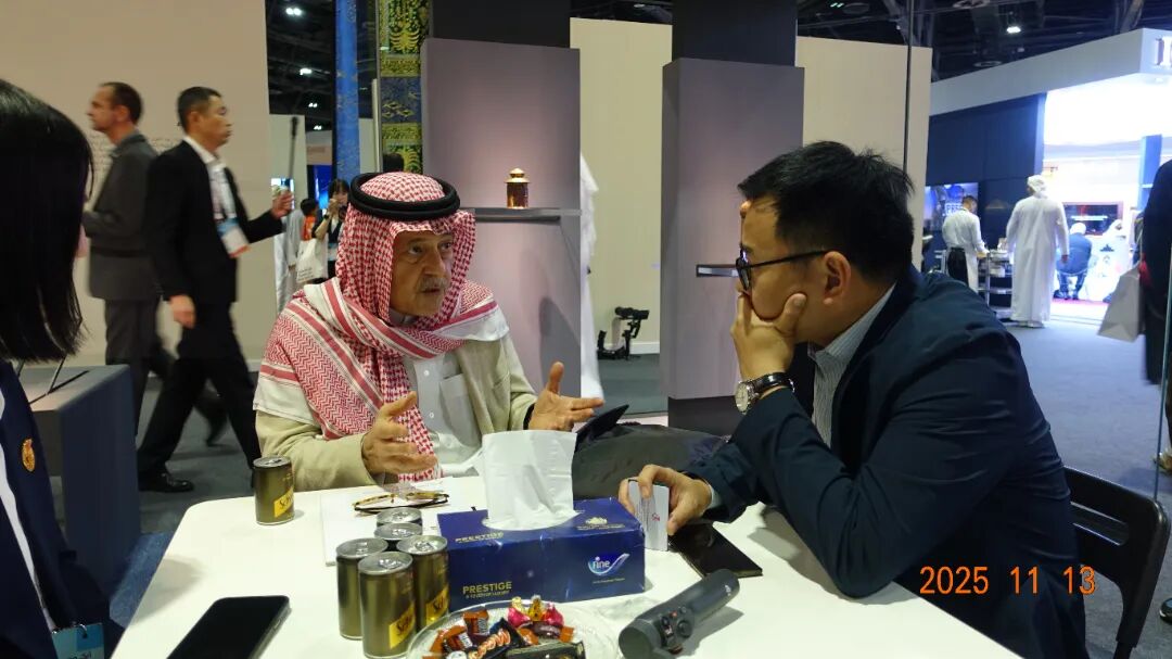 “我们是克里克,来自中国,是博物馆展柜制造商,很高兴来到迪拜参展。”克里克总经理徐晓伟笑对八方宾客。