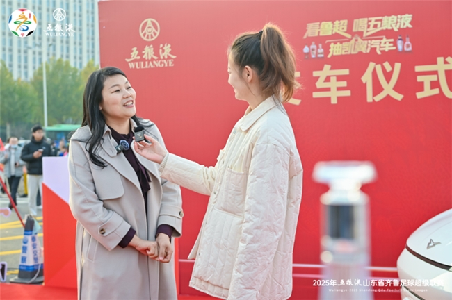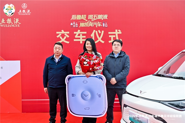 11月23日,鲁超决赛在泰山体育中心体育场热血开战,比赛开始前,一场激动人心的交车仪式率先点燃全场气氛! 五粮液“看鲁超喝五粮液抽凯翼汽车”活动迎来首位凯翼汽车大奖得主,来自山东聊城的李女士在万众瞩目下喜提爱车,将现场的热烈氛围推向高潮。