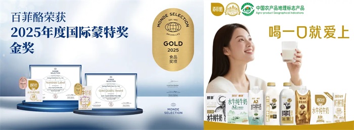 如今,百菲乳业的产品系列已从2021年的 12 个扩展至50多个系列140个产品,目前已经搭建起覆盖全国的产销网络。过硬的产品品质让品牌屡获殊荣,先后斩获福布斯 “2024 大消费年度新锐企业”、国际风味评鉴所“ITI 国际美味奖”“2025年世界品质评鉴大会奖—国际蒙特奖”等多项荣誉,成为消费者喜爱的水牛奶标杆品牌。