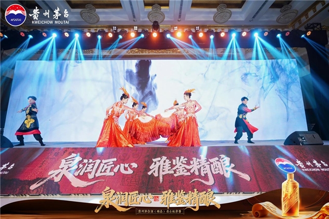 晚宴在典雅温馨的氛围中展开。嘉宾首先共同观看贵州茅台酒(精品)品牌宣传片,随后沉浸于《鹊华秋韵・茅台境》意境中,领略山水凝韵与岁月成酿的完美交融。