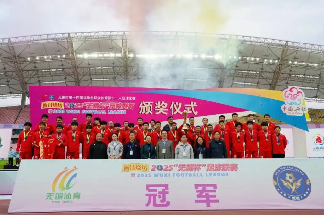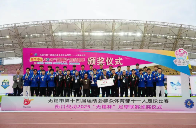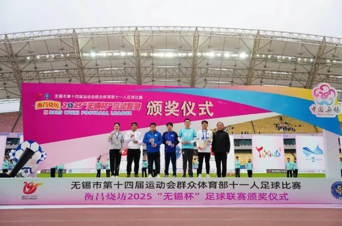 11月23日下午,衡昌烧坊2025“无锡杯”足球联赛决赛在江阴市体育中心体育场圆满落幕。该赛事由无锡市人民政府主办,江苏省足球运动协会指导,无锡市体育局、江阴市人民政府、宜兴市人民政府、梁溪区人民政府、锡山区人民政府、惠山区人民政府、滨湖区人民政府、新吴区人民政府、无锡经开区管委会共同承办,无锡市足球协会协办,江苏超越体育运营推广。
