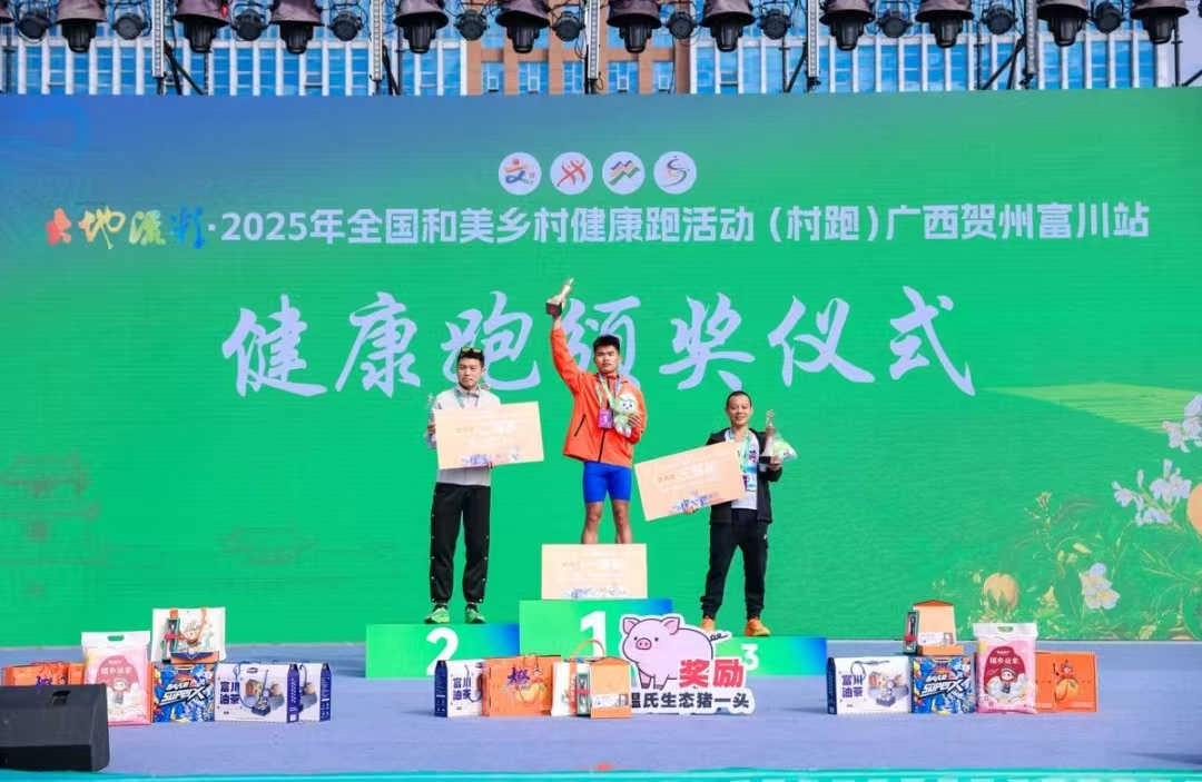 广西贺州富川站为今年村跑收官站,赛道充分融合当地特色,以农产品电商产业园为起点,跑友穿行在脐橙满枝的生态果园与慢城花海之间,在青山碧水环绕的“瑶乡画卷”中奔跑,领略瑶族风情,感受农耕文明与乡村振兴的相得益彰。赛道沿途设置了多个特色补给站和氛围加油点,为跑友提供新鲜脐橙、暖心油茶、软糯糍粑等瑶乡传统小吃。