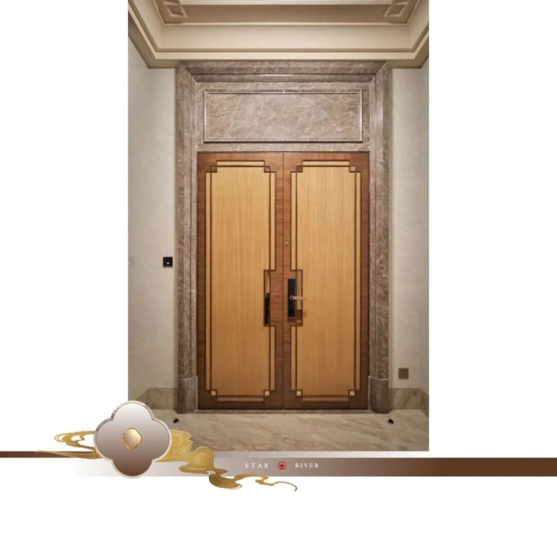 星河湾打造专属尊崇的出行礼遇,独梯独户设计,减少候梯时间与邻里寒暄,高效直达家门,以私密与尊崇勾勒出高阶生活的仪式感。电梯门开,中式双开大门映入眼帘,奢阔门庭尺度,尽显世家风范。