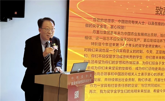 爱阁瑞奇国际丹富仕集团(Agrich Global Group Danforth)在饲料制造、宠物解决方案和智慧牧场等领域深耕多年,并在韩国、中国及亚洲地区开展生猪、肉牛等养殖及投资业务。企业以“为人类提供安全、优质的动物蛋白,建设幸福、富足的社会”为使命,积极打造差异化的企业文化,致力于与员工、客户、股东及社区共享价值,推动构建共生发展的商业模式(EGS)。 此次奖学金活动不仅为中韩优秀学生提供了切实支持,也进一步促进了两国青年之间的友好往来,为深化中韩民间交流作出了积极贡献。 |