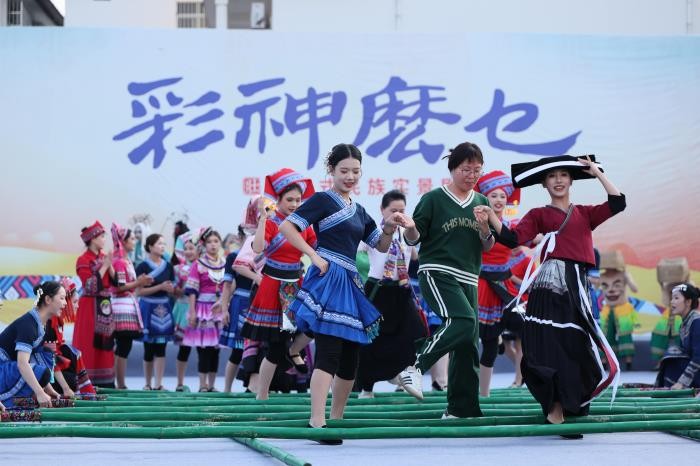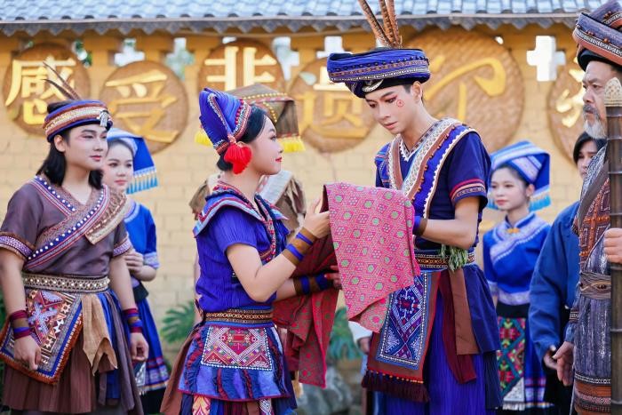 沉浸式民族实景剧《彩神麽乜》严格遵循“根植传统,活化创新”的创作原则,主创团队深入右江壮族聚居区开展田野采风,从民间歌谣与生活习俗中汲取灵感,将奇幻叙事与真实民族情感相融合。该剧通过“沉浸式剧目+非遗+旅游”的创新模式,有效延伸了文旅产业链条,不仅为广西民族文化传承与乡村振兴开辟新路径,也为全区文旅深度融合与高质量发展注入新动能。