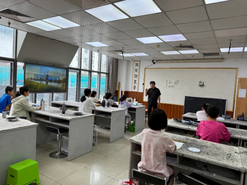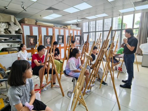 油画班则是另一番景象:调色盘上红与黄碰撞出温暖,蓝与绿晕染出清凉,孩子们握着画笔,把对夏天的想象涂满画布,老师在一旁轻声点拨,让色彩成为他们表达心情的语言。