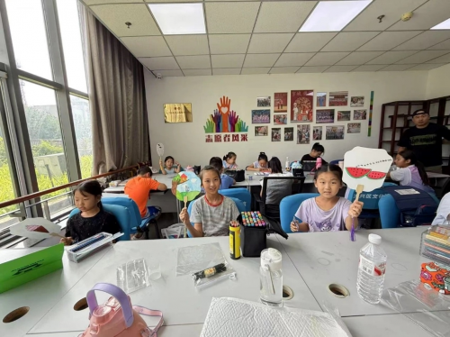 儿童画教室里很是热闹,油画棒、水彩纸、马克笔摆了一桌。孩子们围着“鼎”的主题涂涂画画,剪刀裁着彩纸,童真在指尖流淌,每个学员尽情的发挥自己的想象力。