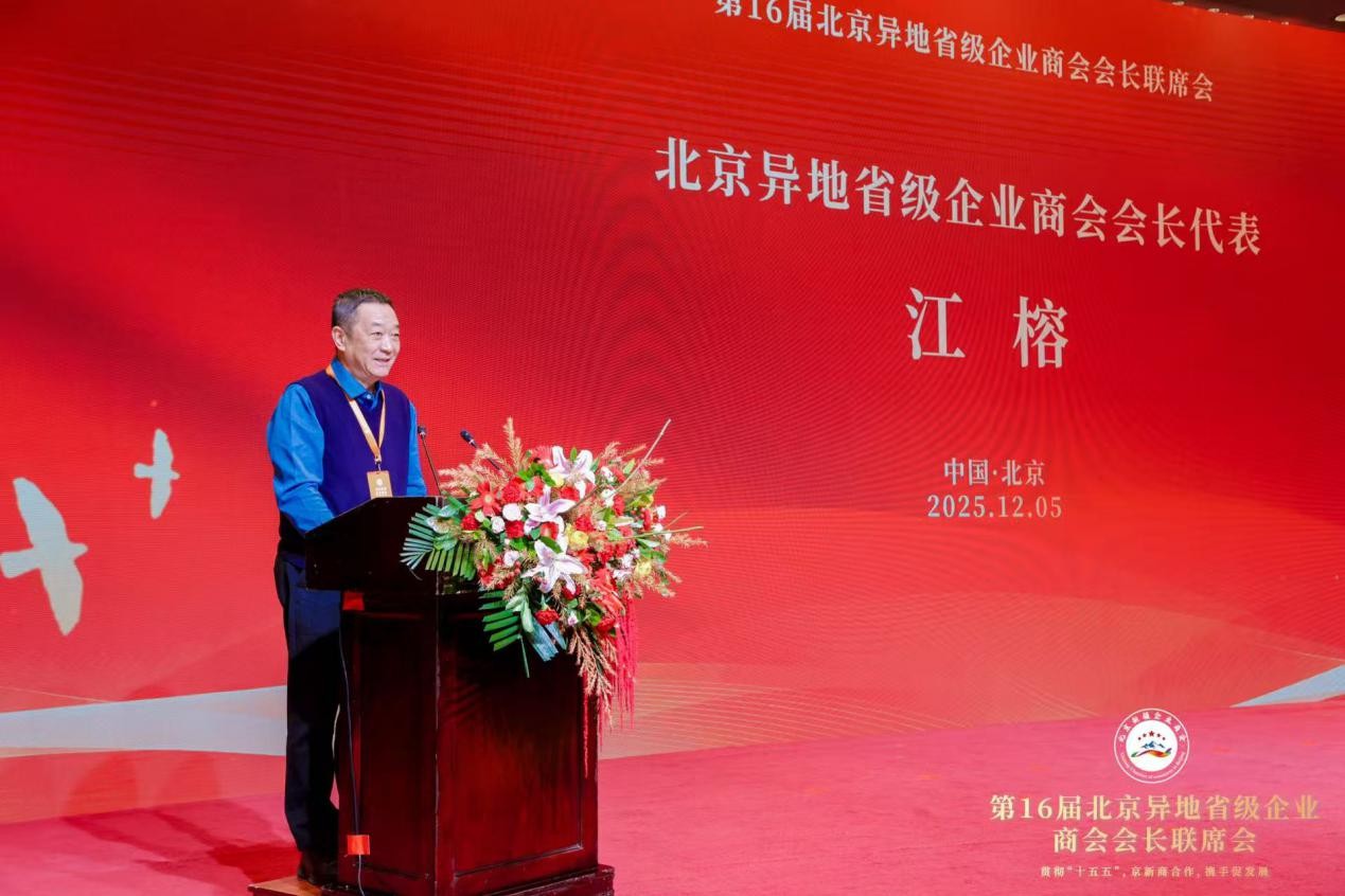 北京新疆企业商会会长丁国进致辞 北京陕西企业商会会长江榕同志代表北京异地省级企业商会会长发言。他对北京新疆企业商会第五届理(监)事会的顺利换届表示热烈祝贺,并高度肯定了其在促进异地企业交流合作、推动区域经济协同发展中的积极作用。江榕会长表示,各异地商会作为连接家乡与北京的重要纽带,在资源整合、信息共享、产业联动等方面具有独特优势。未来,希望与北京新疆企业商会进一步深化合作,建立常态化沟通机制,共享招商资源、共拓合作渠道、共解企业难题,携手打造跨区域商会协作典范,为推动两地经济社会高质量发展贡献商会力量。