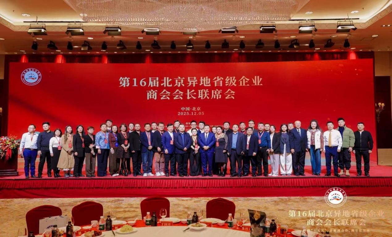 参会领导与北京异地省级企业商会代表合影 此次北京异地省级企业商会会长联席会的成功举行,不仅为北京新疆企业商会注入了新的发展动能,搭建了更为广阔的合作平台,也为各异地商会间深化交流、协同发展提供了宝贵契机。未来,随着各项合作的落地生根,京新两地的经济联系将更加紧密,区域协作将更加深入,必将共同书写新时代跨区域合作发展的精彩篇章。