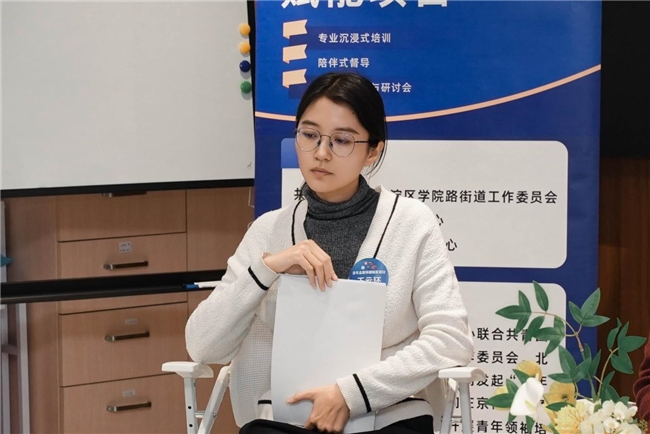北京城市学院靳玉茜老师以海淀区树人家园社区为例,介绍一位清华园林设计专业的青年妈妈,主动带领全职妈妈与儿童群体改造社区斑秃草地,联动高校资源申报奖项,最终打造出获国际设计奖的社区花园,体现了青年作为“专业技能输出者”与“社区需求响应者”的价值。