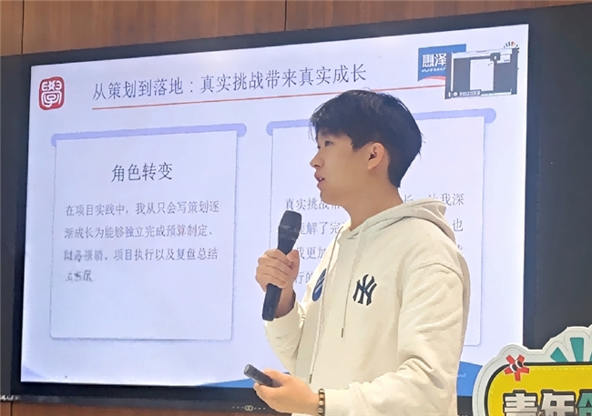 5.从社区实践到行业视野:青年公益人的成长路径 青年志愿领袖赋能班学员代表、民政职业大学养老专业学生符鹤洋则结合自身经历,分享《从社区实践到行业视野》的成长历程,通过参与全国性公益论坛,实现了从“实践操作者”到“行业思考者”的认知跃升,进一步明确“以人为本、需求导向”的服务逻辑,并积极探索跨校协同、资源整合的公益新模式,展现了青年志愿领袖在基层服务中锤炼本领、拓宽视野的责任担当。