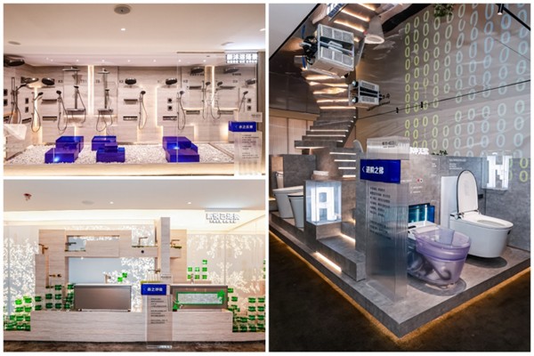设计细节更巧妙地融合自然意象与科技元素:“水之乐章”新沐浴场景:核心是数显智控与精准节水技术,通过恒洁新款沐浴花洒的精准控水与即关即停技术,重塑日常沐浴的畅爽体验。 “森之呼吸”新悦己场景:运用透光膜与绿色玻璃体块构建“热带雨林”意象,结合恒洁浴室柜的环保防潮特性与智能收纳系统,打造兼顾实用功能与美学体验的个性空间。 “进阶之梯”新智享场景:阶梯式布局与投影“0”符号设计,配合Q、R、N系列智能马桶的静音、抗菌与极致洗护技术,重新定义健康如厕标准。