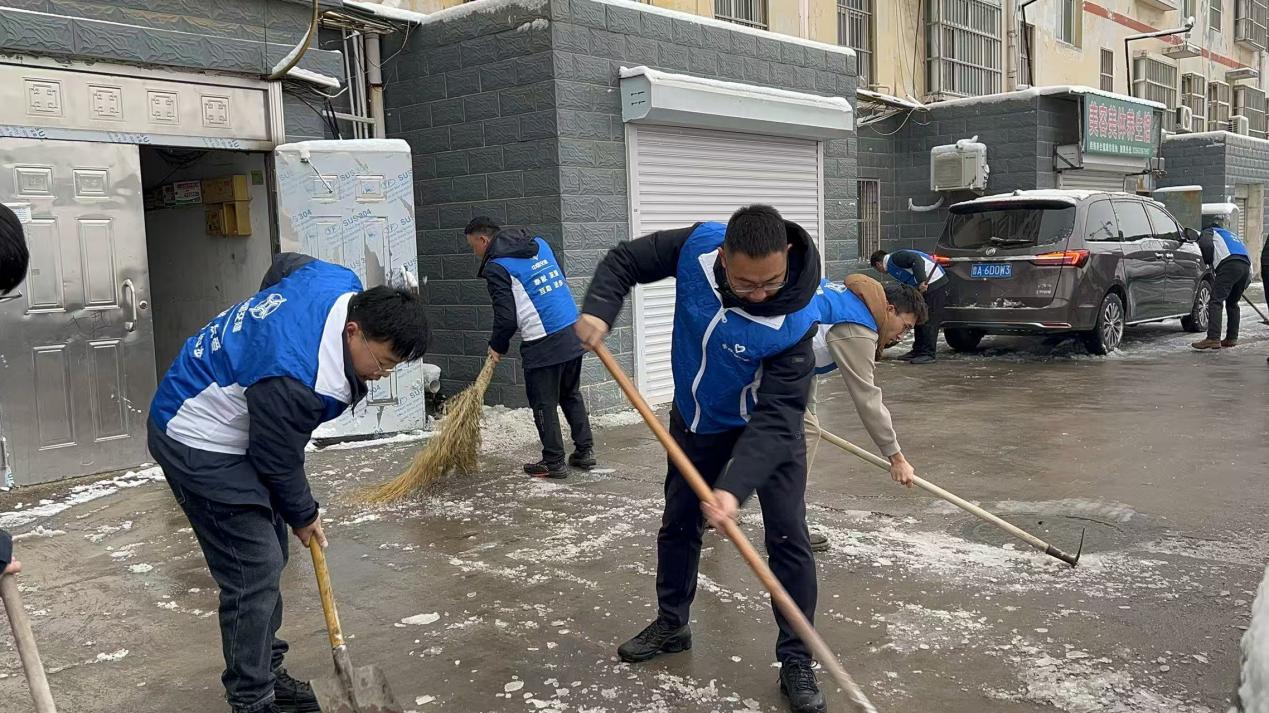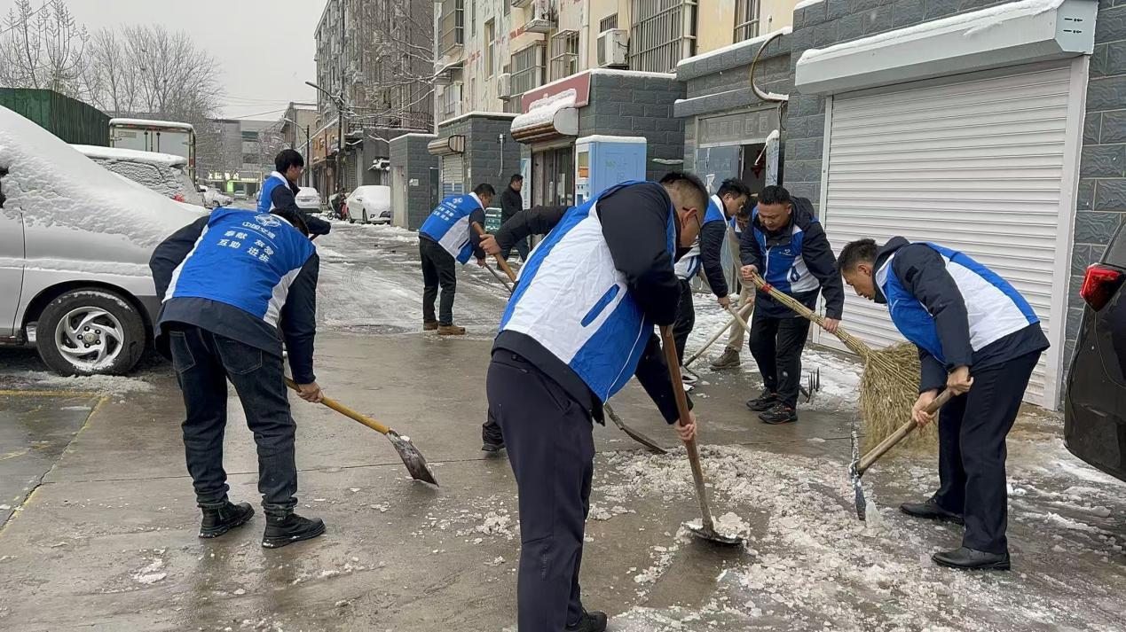 “通知蓝马甲志愿服务队,八点前集结完毕。”侯博转过身,语气果断。他的话音未落,工作群里的消息已经闪动起来。“收到!”“马上到!”“已联系队伍协调清雪设备。”不到十分钟,一支由项目员工组成的30人“蓝马甲”志愿队组建完成。八点整,天刚蒙蒙亮,一群身着蓝马甲的身影已经出现在项目附近的和谐家苑小区入口。 据了解,这个建于十五年前的小区有400多户居民,其中三分之一是老年人。积雪已没过脚踝,小区唯一的主干道成了滑冰场,几位早起的老人正试探着脚步,小心翼翼地挪动。项目蓝马甲志愿者迅速分工,一部分人负责主干道和单元门前的积雪清理,另一部分则重点清扫坡道、台阶等易滑区域。铁锹与地面摩擦的声音打破了清晨的宁静。 雪花仍在飘落,志愿者的蓝色马甲上很快覆盖了一层白色,但很快又被体温融化。项目施工员小王原本白皙的手已冻得通红,却一刻不停地将铲起的雪堆到路边。“没想到你们央企的人这么早就来帮我们清雪。”小区物业经理匆匆赶来,声音中带着惊讶与感激。事实上,这并非河东项目“蓝马甲”志愿服务队第一次行动。自项目开工以来,这支队伍已参与了道路维修、帮扶孤寡老人、安全知识宣传等多项志愿活动,与周边居民建立了深厚的情感纽带。 上午九点,清雪工作进入最繁忙的阶段。此时,小区居民陆续出门,看到正在忙碌的“蓝马甲”,许多人停下脚步。“这雪下得突然,要不是你们,我都不敢出门买药。”拄着拐杖的王奶奶感激地说。人群中,一位中年男子默默拿起自家储藏室的铁锹,加入了清雪队伍。“我家住三楼,看着你们从八点干到现在,心里过意不去。”他简单的一句话,却让现场气氛更加温暖。项目书记王磊边铲雪边与居民交谈:“咱们央企来到地方搞建设,不能只建工程,更要建感情。以后有什么困难,随时跟我们联系。”