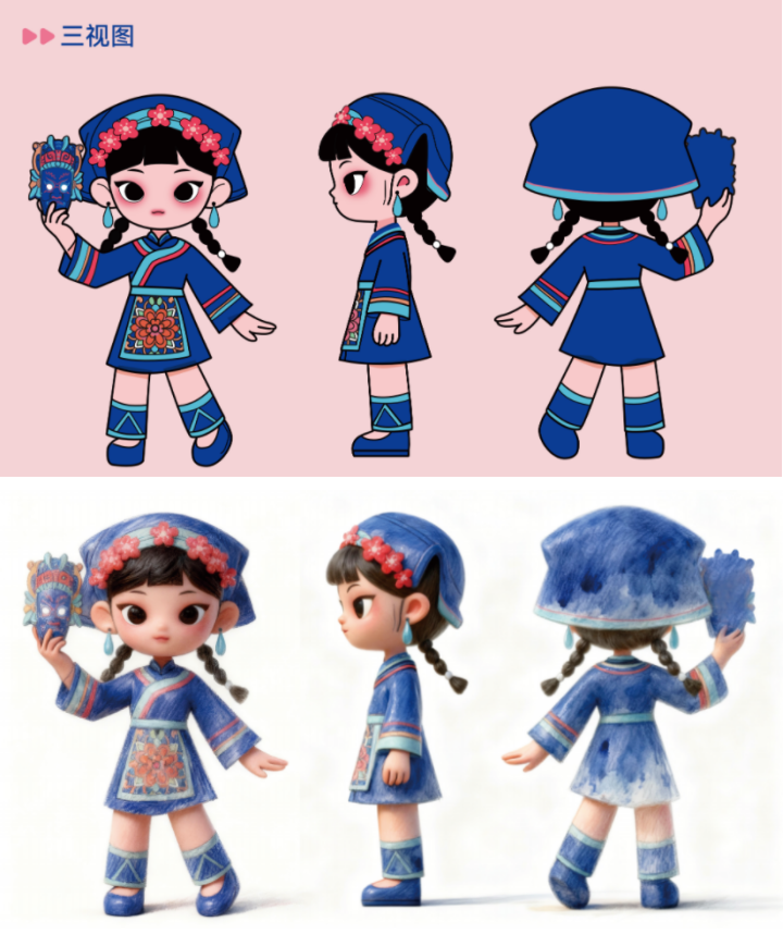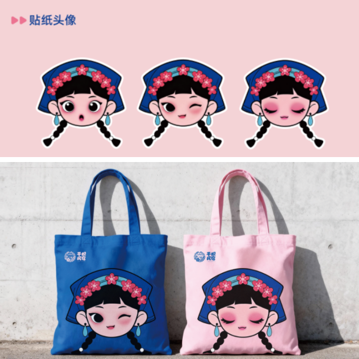 IP形象“屯堡花灵”是一位身披布依蓝靛染传统服饰的屯堡少女,发间簪着盛放的平坝樱花,手拿地戏面具。她是屯堡文化的传承者,也是花海的精灵使者,热情邀请旅人走进她守护的石头城堡旁,感受布依族的蓝染技艺与地戏豪情。