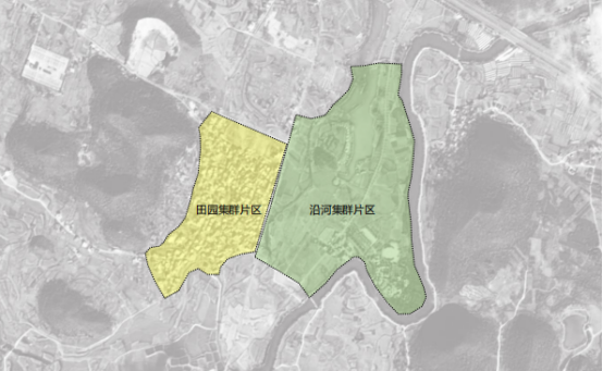 小河湾村民宿群规划以“水墨山居,苗韵雅集”为主题,打造一个集滨水休闲、民族 文化、田园栖居、亲子趣玩于一体的城郊微度假目的地。在空间布局上,形成沿河 集群和田园集群两大发展组团,沿河集群以现有苗寨为基础,田园集群以老鸡场村为基础。