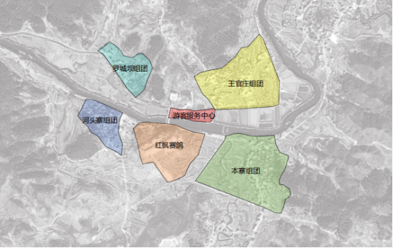 龙海村民宿群规划以“布依文化,赛鸽文化”为主题,打造一个集田园休闲、赛鸽竞趣、民族风情、生态康养于一体的复合型乡村旅游体验地。民宿空间布局形成“一河两岸四组团”的空间格局,以村委会驻地为中心,沿羊昌河(邢江)两岸村寨形成的四大民宿发展组团,分别为本寨组团、河头寨组团、王官庄组团、和罗城坝组团。