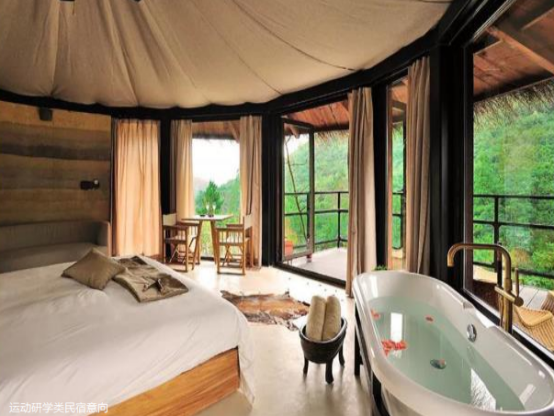 一朝步入,一日梦回。 2.小河湾村 自在·回归·活力 小河湾村打造了三个主题民宿,分别是自在、回归、活力,也代表着游客在小河湾景区的体验。 “田间花舍”民宿:活力