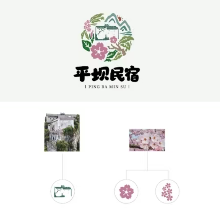平坝民宿还发布了统一的LOGO和IP形象。LOGO把平坝天台山伍龙寺的檐角轮廓、山脊线条,还有樱花的粉色,作为核心设计元素。山形线条代表平坝扎根在地的文化底蕴(像脊梁撑起根基),樱花是平坝春天灵动的“呼吸”,伍龙寺元素则是自然和人文对话的桥梁,通过整体的构思,把平坝独有的韵味和浪漫,都融进一个简单的符号里。
