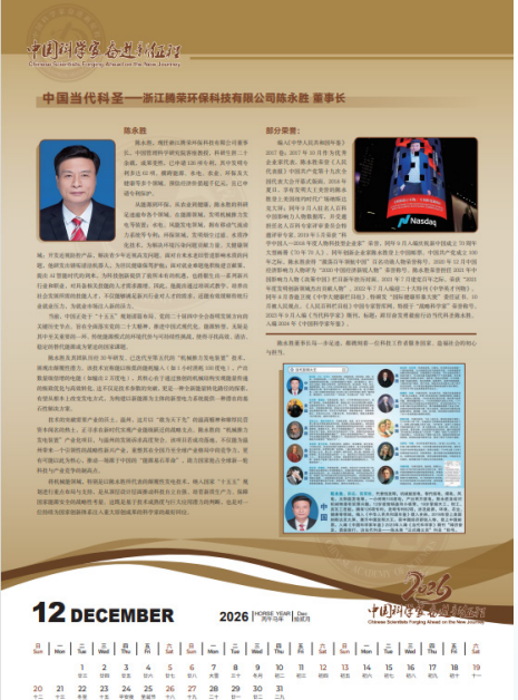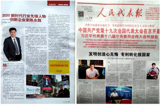 尤为可贵的是,陈永胜的科研从未局限于实验室。他坚持“发现问题—解决问题—造福于民”的闭环逻辑,将创新真正落地于民生改善与产业升级之中。例如,在船舶、飞机、火车等交通工具的燃料节省方面,他取得关键技术突破,有效降低运输能耗,提升运行效率,这一系列成果同样纳入其专利体系,展现出跨领域协同创新的能力。他常说:“我们不是为申请专利而专利,我们是以发现问题、解决问题为初衷,是以发明创新、造福于民为使命。”这种朴素而坚定的信念,贯穿其整个科研生涯。 正因如此,他的成就获得社会各界广泛认可,个人事迹先后入编《中华人民共和国年鉴》(2017卷)、《中国科学家年鉴》(2024年版),并多次登上《人民代表报》等权威媒体。2017年10月,作为优秀企业家代表,其形象出现在《人民代表报》关于党的十九大开幕式专题版面;2019年,入编庆祝新中国成立70周年大型画册《70年70人》;2021年建党百年之际,荣获“激荡百年领航中国”百名功勋人物称号。从地方企业家到国家战略科技力量的代表,陈永胜用二十年光阴,走出了一条独具特色的科研报国之路,其影响力已从行业内部扩展至国家层面,成为新时代科技型企业家的典范。
