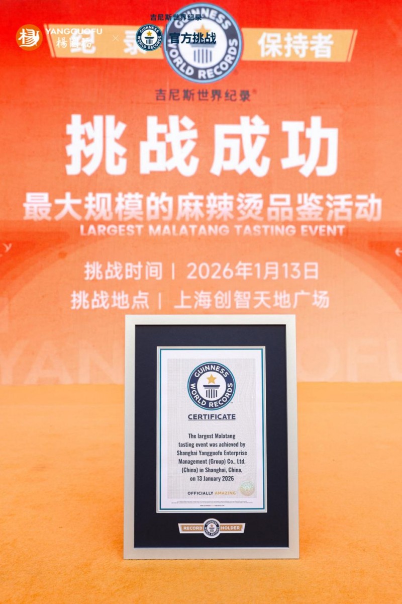 在相关部门领导的指导及吉尼斯认证官胡晓雯女士的全程见证下,经过严谨的核验,胡晓雯女士正式宣布杨国福集团挑战成功。这一荣誉,既是对杨国福麻辣烫产品品质的权威认可,也向外界传递了品牌以高标准接受全球检验的态度。