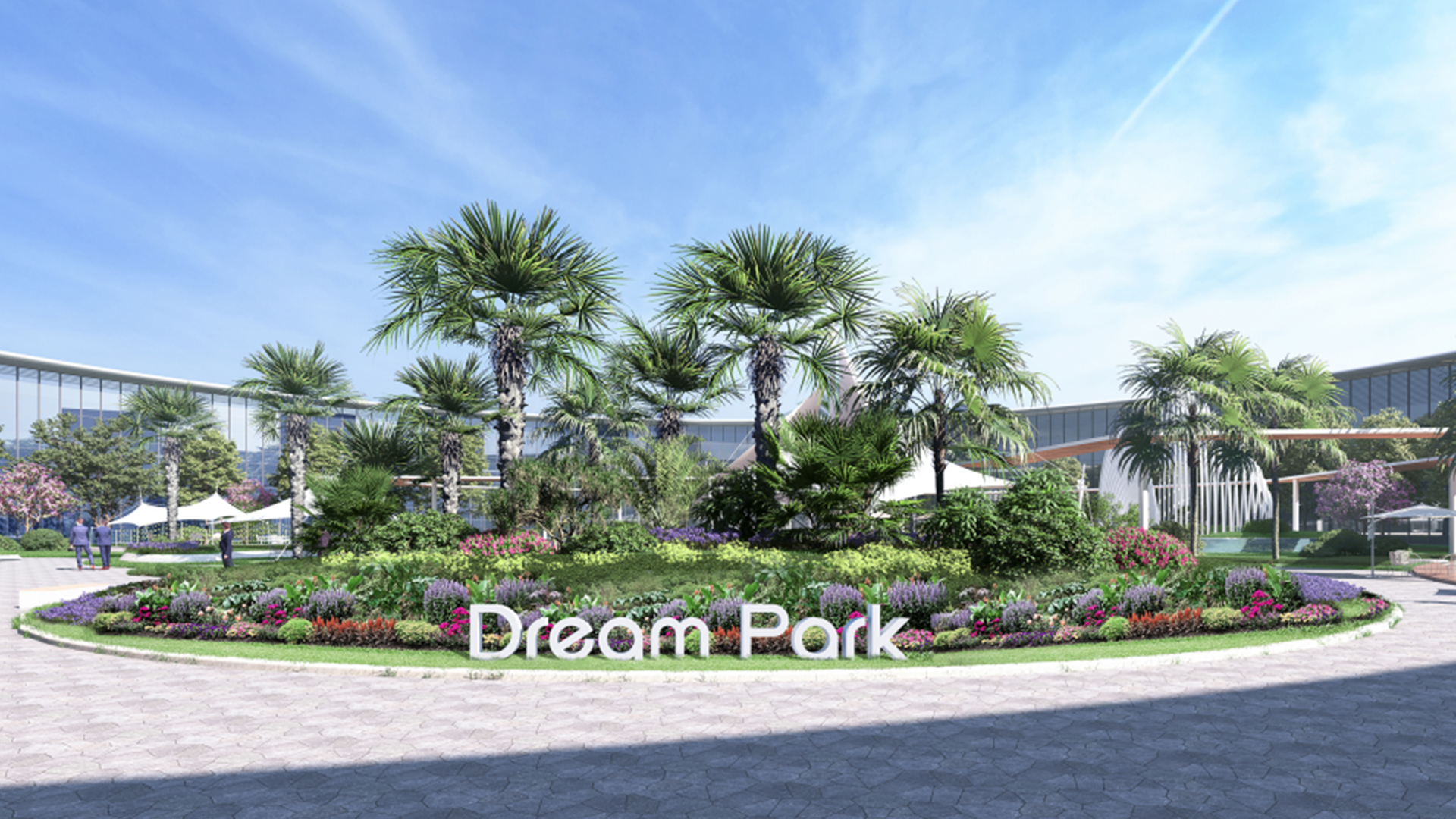 Dream Park全球总部基地:颠覆工业建筑设计理念 园区以“山水入梦,玉境生辉”为理念,融合东方美学与自然哲学,构建出一方一圆、一动一静的和谐格局。建筑外观摒弃传统工业的冷硬线条,代以流畅舒展的形态与大面积玻璃幕墙,融入9.7万平方米园林景观。