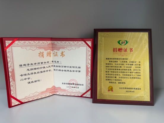 作为一家秉持“选择善良,让更多人享有法治”理念的律所,泽良律师事务所在稳健发展业务、依法纳税的同时,始终将公益事业视为重要责任,每年预留固定公益预算,重点投向教育与医疗领域。此次助力永安二中发展,正是律所践行公益理念的生动体现 —— 通过改善教育硬件、设立奖励机制、搭建实践平台,不仅为母校发展注入动力,更希望以 “自强” 精神为指引,鼓励更多青少年依靠知识改变命运,成长为有理想、有担当的时代新人。