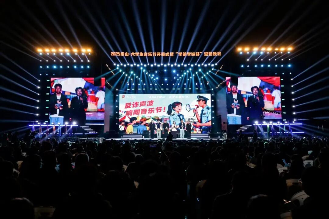 10月15日,泰山科技学院举行2025泰山·大学生音乐节开幕式暨“学弟学妹好”迎新晚会,全校2万余名师生沉浸于这场充满活力的晚会,感受视听盛宴。