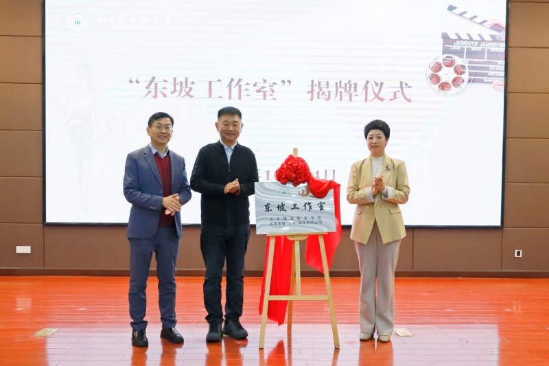 (郝燕、刘江波、肖东坡共同为山东服装职业学院“东坡工作室”揭牌)