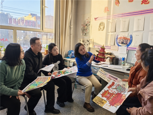 海亮科技工作人员在为教师作数字化培训 数字化更为教研活动“上了闹铃”,定时启动,且行为数据全部留存。在河曲县长城小学,每周三是“雷打不动”的集体备课日,各教研组会准时聚集,讨论教学难点。 高频的碰撞,激发出更多教学创新。语文教研组组长乔胜荣开始带领教师们,实践情境教学法,用角色扮演激发学生对古诗词的兴趣。而在同样坚守备课习惯的黄河路小学,英语教研组组长菅慧敏正把音乐、美术融入课堂,带领学生开展多元化的英语创作。