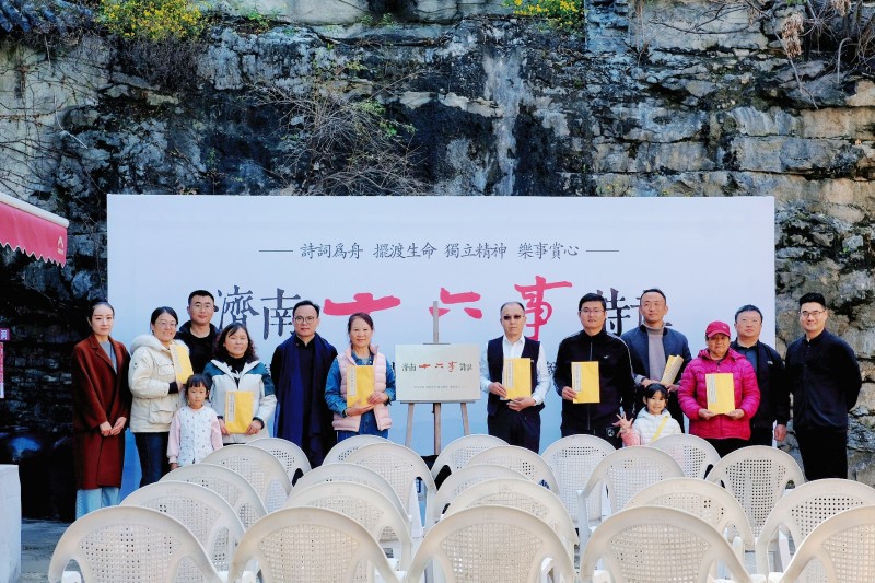 11月9日上午,济南“十六事”诗社在千佛山景区成立,该诗社由诗词名家高三适、刘尊九、王安之、王传保、文白共同发起,首次雅集现场,诗社推出了第一部诗集《五方诗字凭人说》,成立现场发挥了“自由、随心、恬淡”的气氛,千佛山游客随缘参与,诗社确定了“诗词为舟,摆渡生命,独立精神,乐事赏心”的宗旨,将每年推出诗词著作及雅集活动,让诗词焕发时代生命。 作为十六事诗社的首任社长,高三适先生谈到“十六事”取自苏轼的“赏心十六事”,作为创作者,诗词带给生命的更多是丰富和升华,人之一生,该以诗词为舟楫,完善自我,美好亲朋,这才是国人独有的浪漫,济南被称为“诗城词都”,十六事诗社仗此而立,实为幸事,诗词,为己为人为家为国,四位一体,当更多发扬。 附:苏轼“赏心十六事”—— 清溪浅水行舟;微雨竹窗夜话; 暑至临溪濯足;雨后登楼看山; 柳阴堤畔闲行;花坞樽前微笑; 隔江山寺闻钟;月下东邻吹萧; 晨兴半炷茗香;午倦一方藤枕; 开瓮勿逢陶谢;接客不着衣冠; 乞得名花盛开;飞来家禽自语; 客至汲泉烹茶;抚琴听者知音。