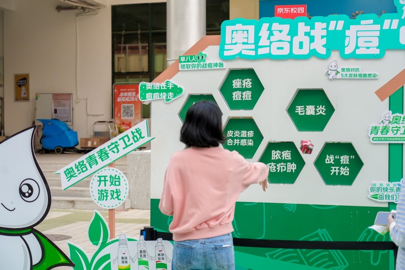 跨界联动,打造校园解压新体验 本次活动突破传统校园活动形式,深度融合品牌特色与心理关怀。现场设置“情绪转换登记处”,学生完成认证后即可领取专属解压装备,开启“压力卸载”旅程。六大主题解压关卡,包括“奥络战‘痘’中心”“玉泽舒缓抗压挑战赛”“压力KO竞技台”“烦恼试炼场”等,将趣味运动与品牌产品体验巧妙结合。学生们在“击打不倒翁”“锤击情绪模块”“投掷烦恼纸团”等互动中尽情释放情绪,同时在沉浸式体验中加深了对各品牌产品功效的理解,实现了“玩中种草”的深度沟通。
