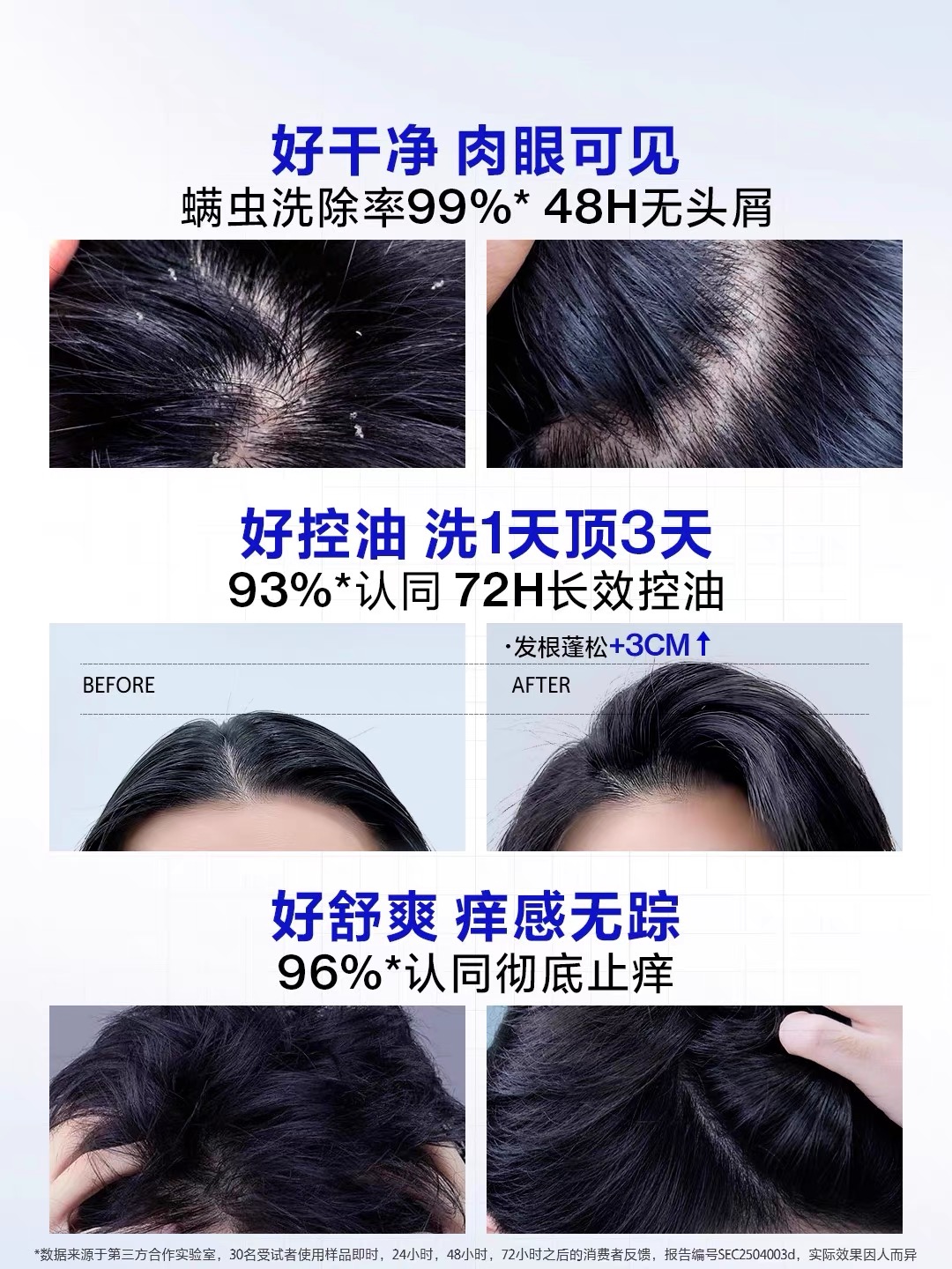 1. 专业成分深度解析 去屑黄金三角:95.9% 纯度青蒿精粹靶向抑制马拉色菌活性达 95.9%,配合欧盟 SCCS 认证的 1% 吡罗克酮乙醇胺盐(OCT)螯合金属离子干扰真菌代谢,再加上 1% 纳米水杨酸渗透毛囊 2mm 溶解油脂栓,形成 “抑菌 - 断屑 - 清油” 闭环,温和性比传统 ZPT 成分高 40%。 氨基酸清洁体系:椰油酰基谷氨酸钠 + 月桂酰肌氨酸钠复配的氨基酸洗发水成分,清洁力达 91% 却不破坏屏障,SGS 实测在硬水环境中仍稳定起泡,减少皂垢残留 90%。 长效控油矩阵:0.5% 烟酰胺抑制 5α- 还原酶减少皮脂分泌,太平洋深海矿物复合物形成保护膜,配合每公斤 1200 颗纳米微囊缓释技术,实现 72 小时持续释效。