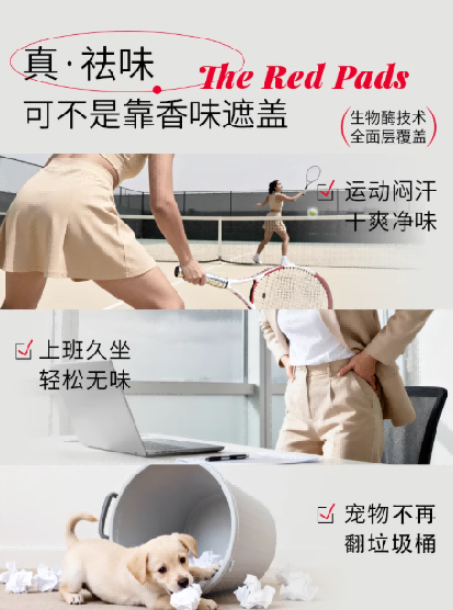 从产品矩阵来看,The Red Pads已形成覆盖全场景的“酶锁味系列”产品体系:180mm的The Red Mini适配日常通勤与量少时段,245mm经典款满足日间基础需求,290mm与420mm的The Red Plus系列聚焦量多与夜间防护,The Red Ultra安睡裤则针对特殊场景提供全面守护,搭配配套湿巾产品,可提供一站式经期护理方案,进一步提升了消费者对线上全渠道上线的期待度。值得一提的是,该系列产品此前已通过多轮测试验证,其品质与体验获得目标用户高度认可,为此次线上全渠道上线奠定了市场基础。